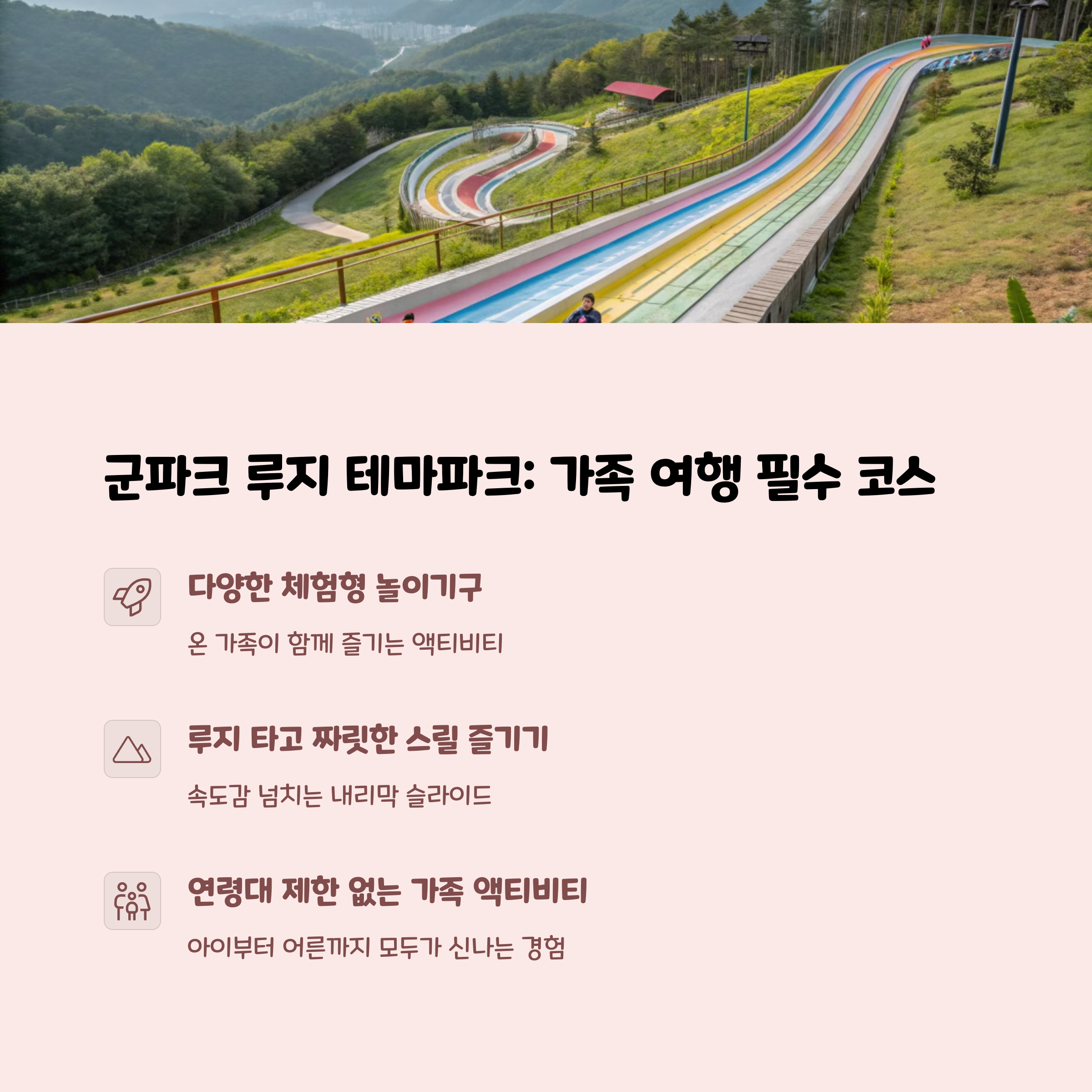 스릴 넘치는 루지를 체험할 수 있는 군파크 테마파크.