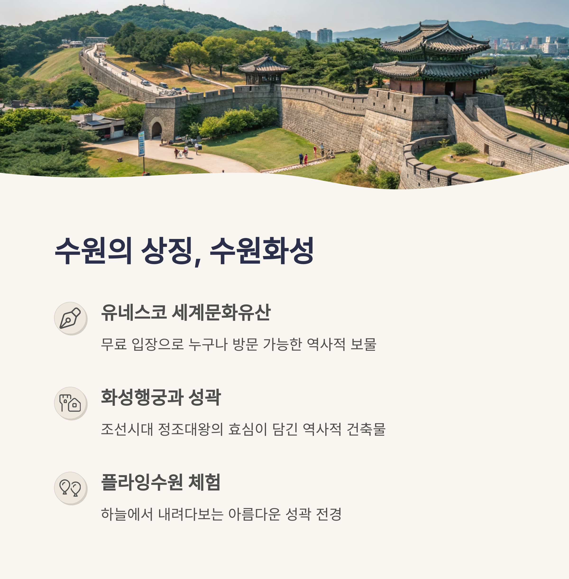 수원은 계절마다 다른 매력을 선사하는 도시로, 자연과 역사를 동시에 느낄 수 있는 곳입니다.