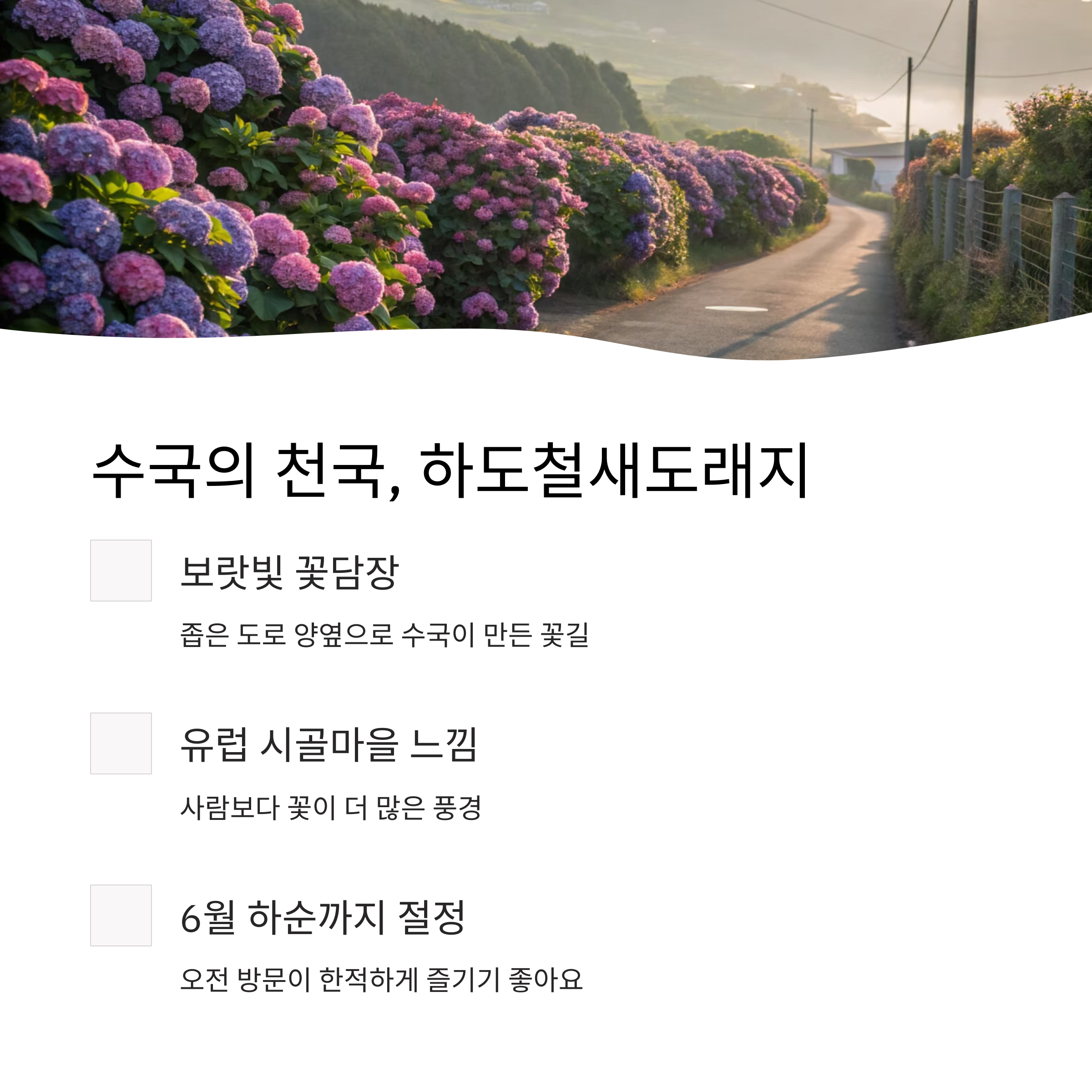 6월 중순이면 하도리는 온통 수국으로 물듭니다.
