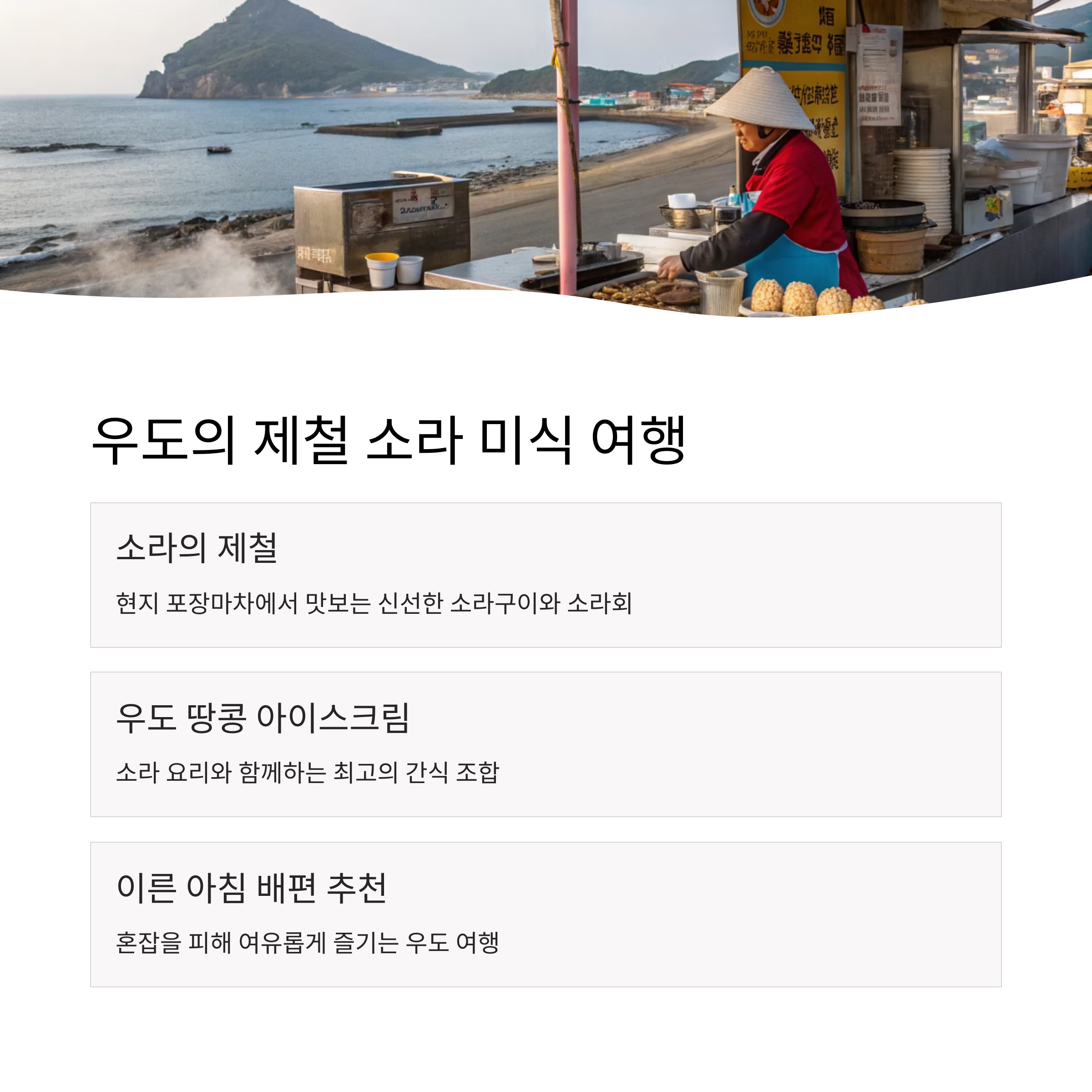 7. 제철 소라와 함께하는 우도 미식 여행