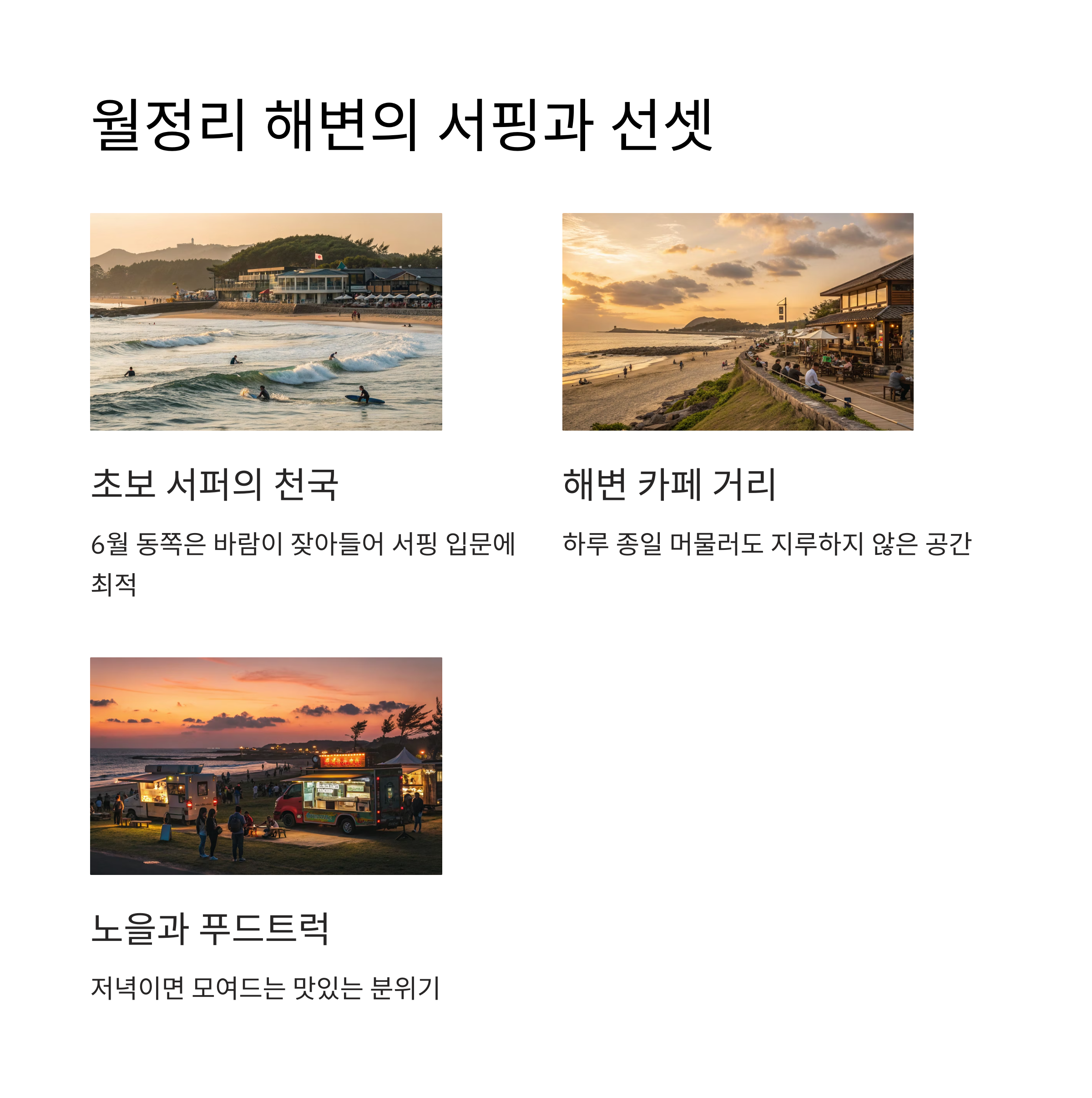월정리 해변은 물놀이뿐 아니라 해변 카페 거리로도 유명합니다.
